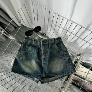Quần váy Jean bigsize từ 40-85kg, kiểu quần đùi giả váy thắt nơ cho nữ dáng chữ a cạp cao 2KJean MS2035