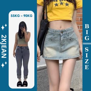 Chân Váy Jean Nữ Bigsize 55-90kg Có Quần Trong kiểu túi hộp Ms2009 Thời Trang 2Kjean