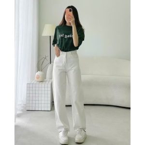 – Chất liệu jean baggy bò nữ cotton không co giãn, vải jean mềm mịn thoải mái