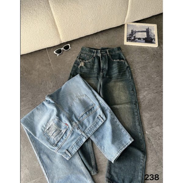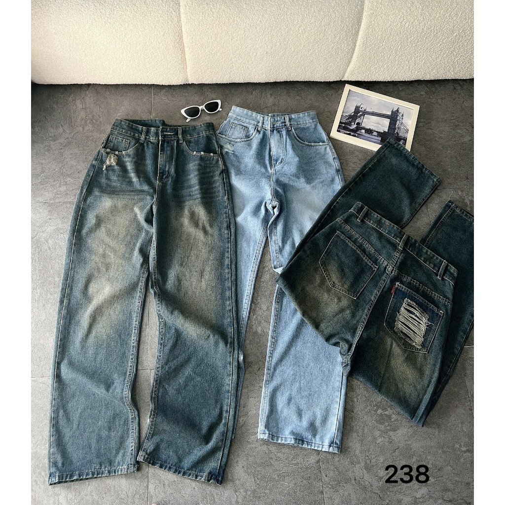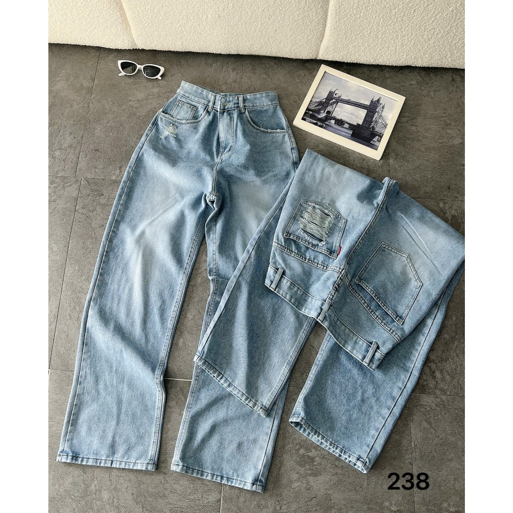 Quần ống suông rộng jean nữ rách kiểu túi Bigsize 55kg-90kg hàng VNXK cao cấp, kiểu dáng xuông rách nhẹ MS238 2KJeans
