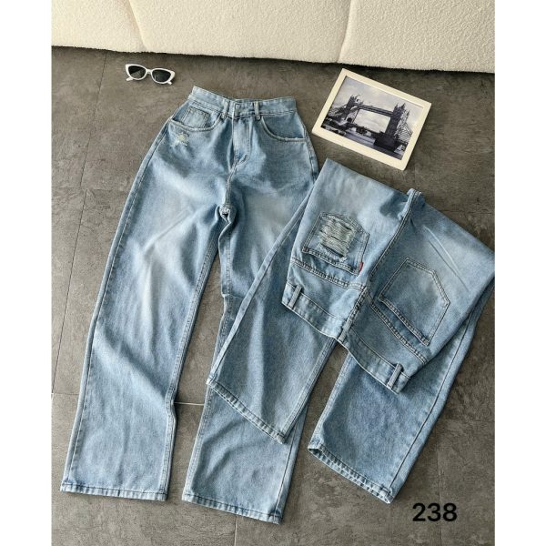 – Chất liệu jean baggy bò nữ cotton không co giãn, vải jean mềm mịn thoải mái