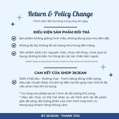 – Cam kết: 100% Chất liệu – Đường may – Form dáng đúng chất lượng