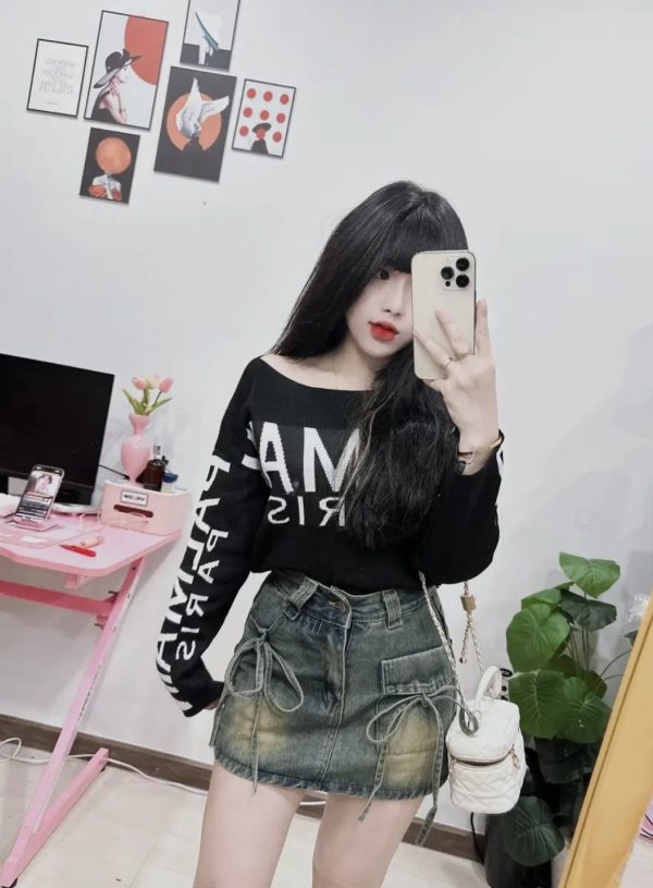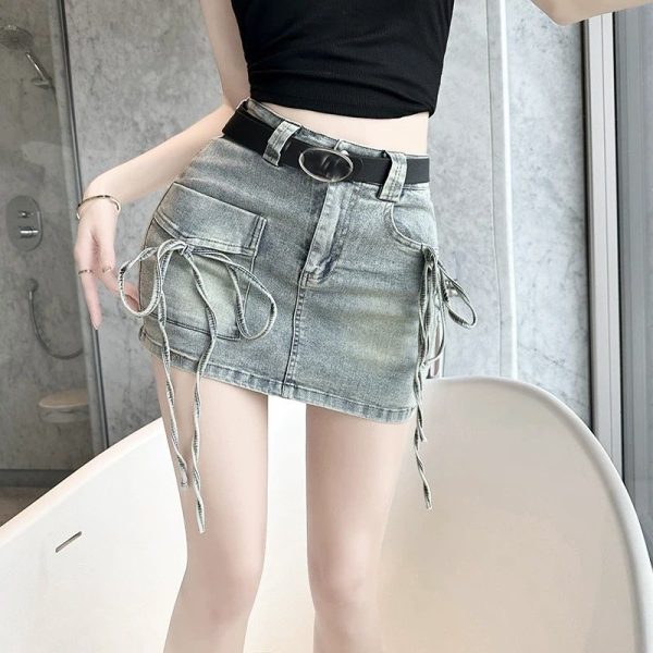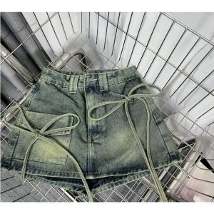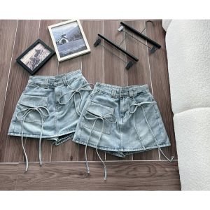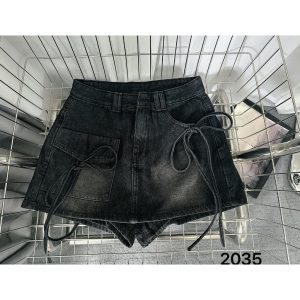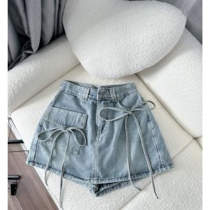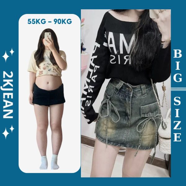 – Tên sản phẩm: Quần váy Jean bigsize từ 50-85kg, kiểu quần đùi giả váy thắt nơ cho nữ dáng chữ a cạp cao 2KJean MS2035